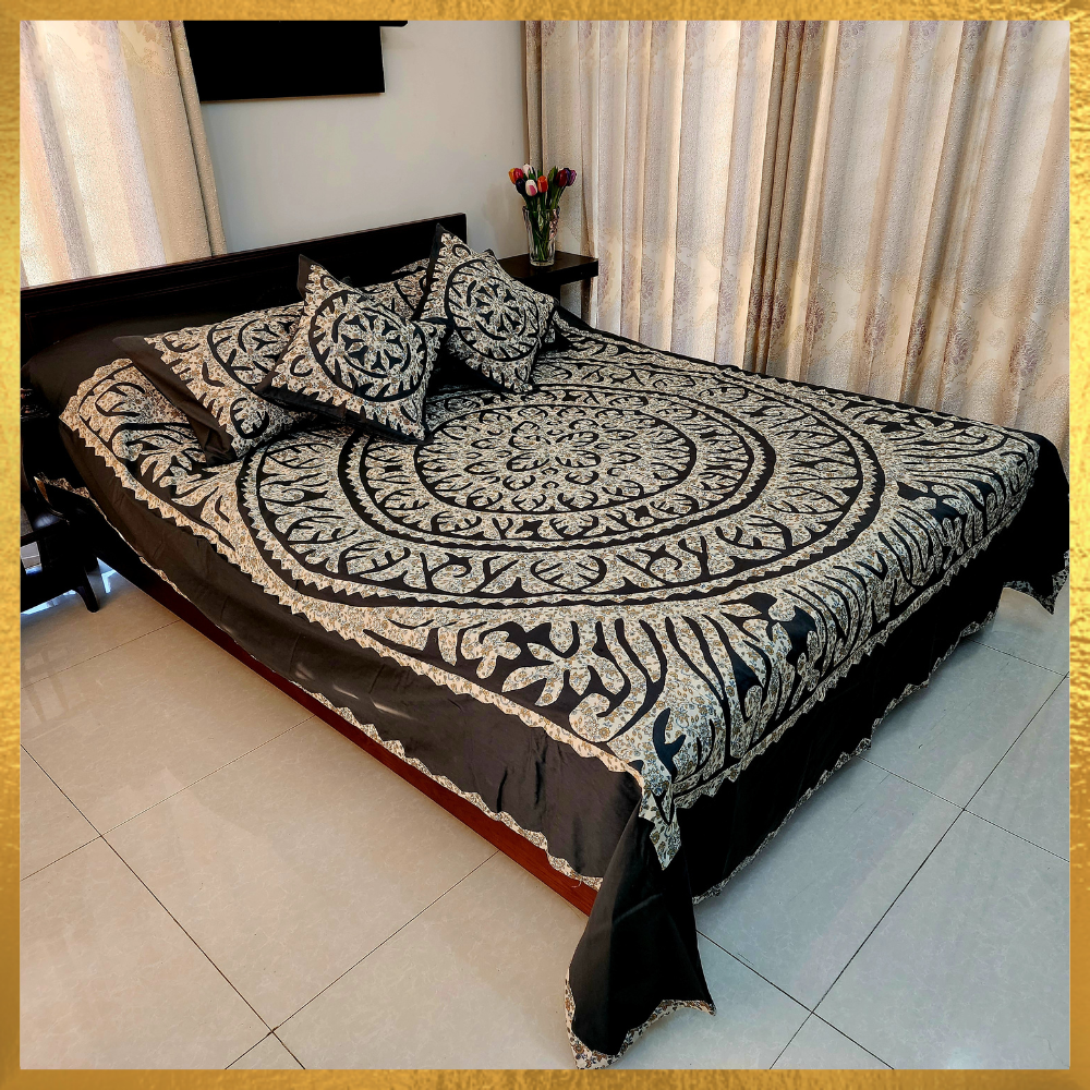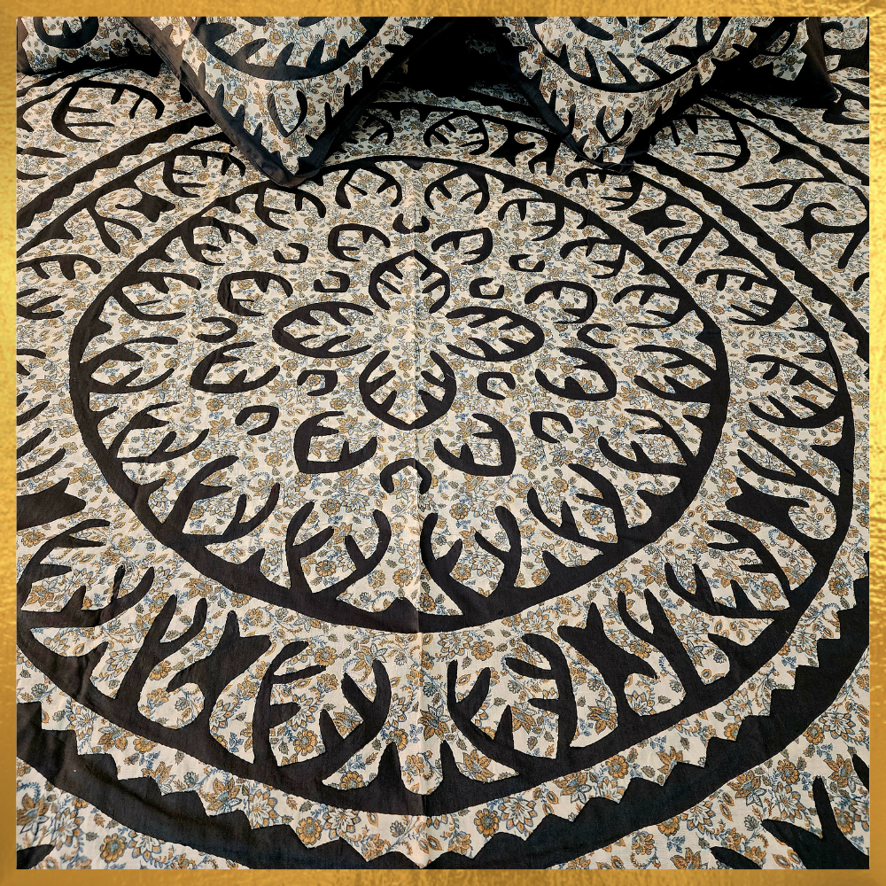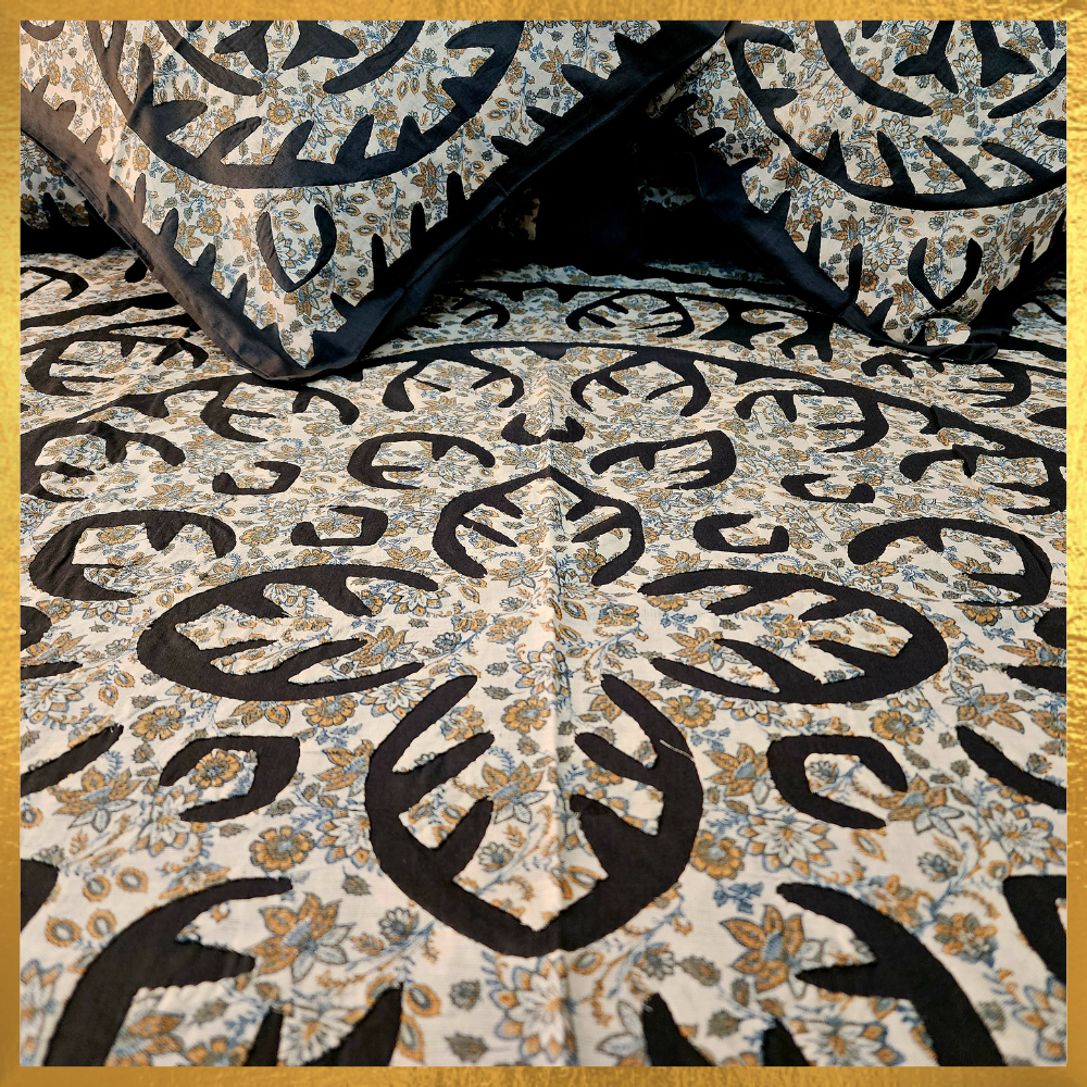 Appliqued Bed Cover With Pillow Cover and Cushion Cover