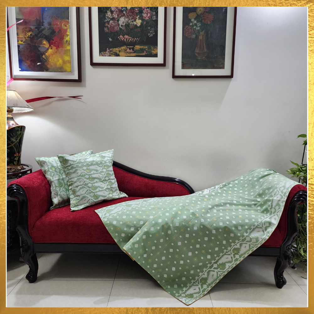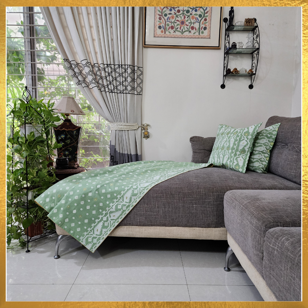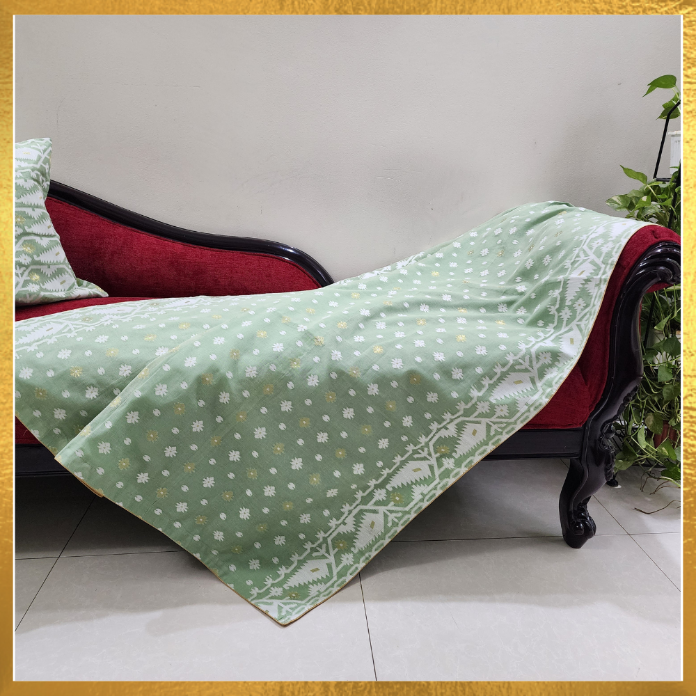 Jamdani Throw Blanket with a Golden Silk Border