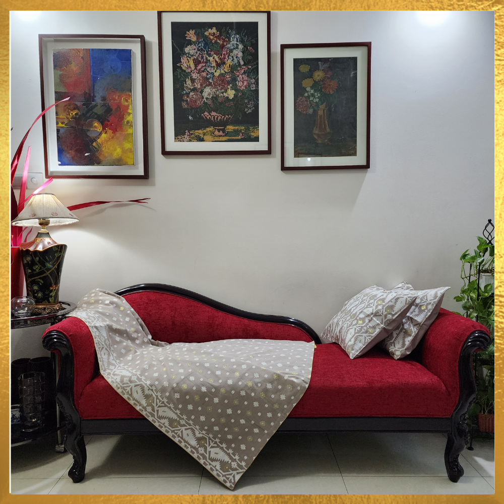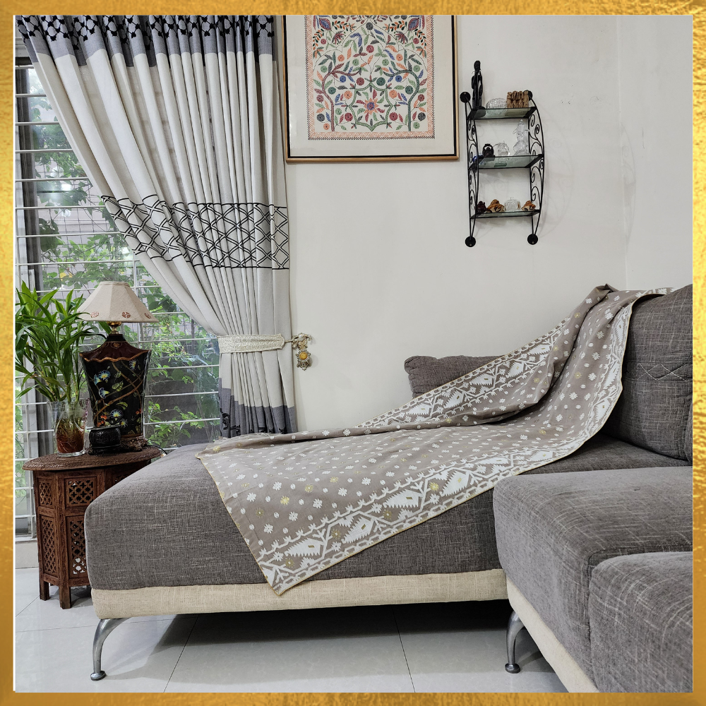 Jamdani Throw Blanket with a Golden Silk Border