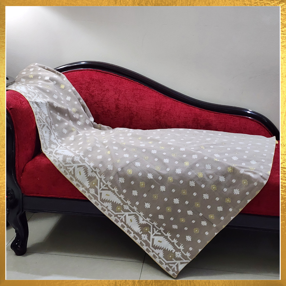 Colour: Beige Jamdani with Golden and White Work.