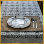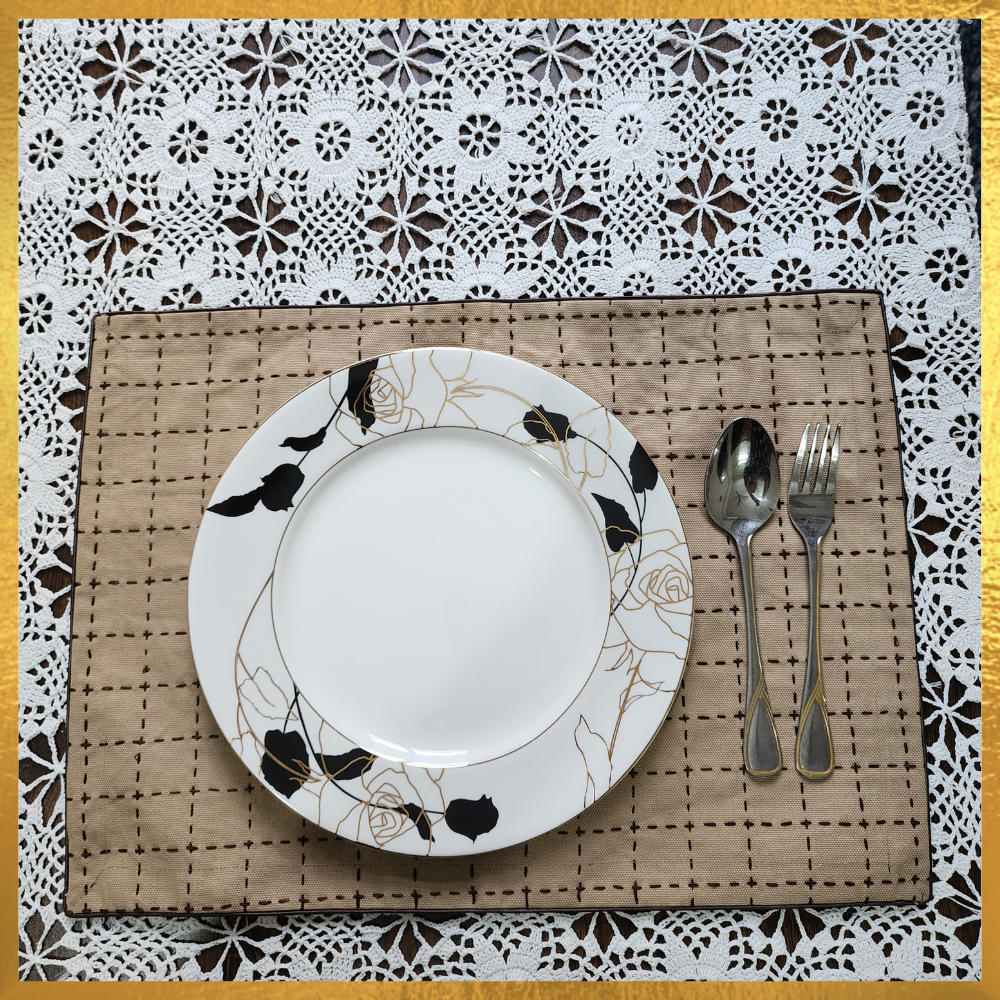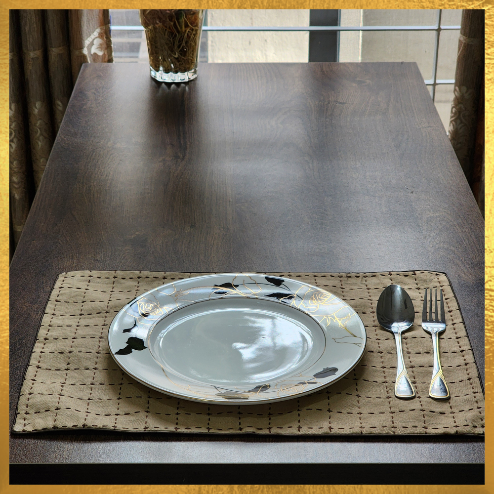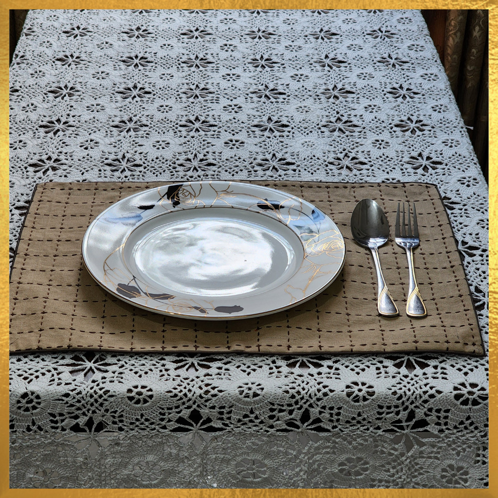 Light Brown Cotton Self-Printed Placemat with a Hand-Embroidered.