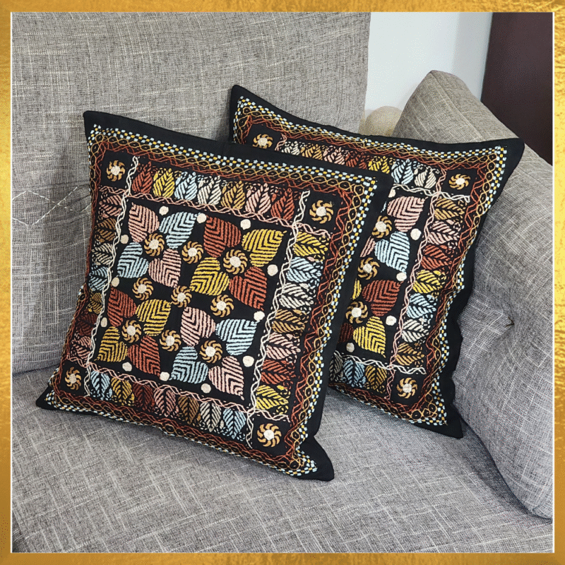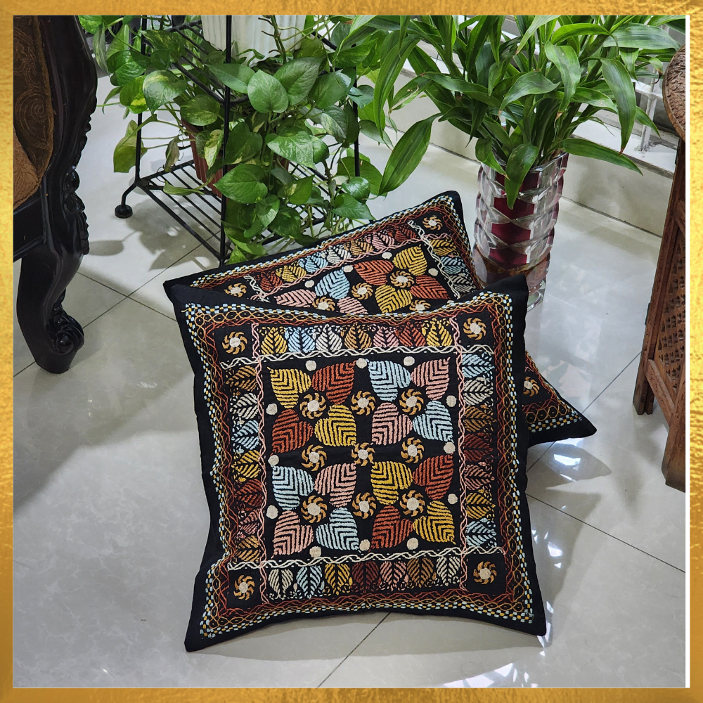 Cushion Cover with Multi-Colour Nokshi Katha Hand Embroidery